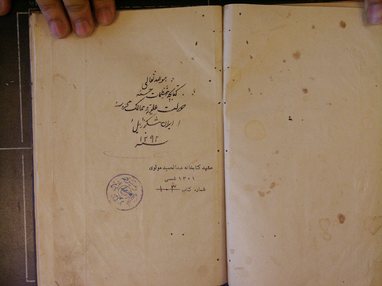 : مجموعه 47 ماده آئین نامه حکام دولت است که به روزگار ناصرالدین شاه قاجار در 1292هجری تصویب شد
