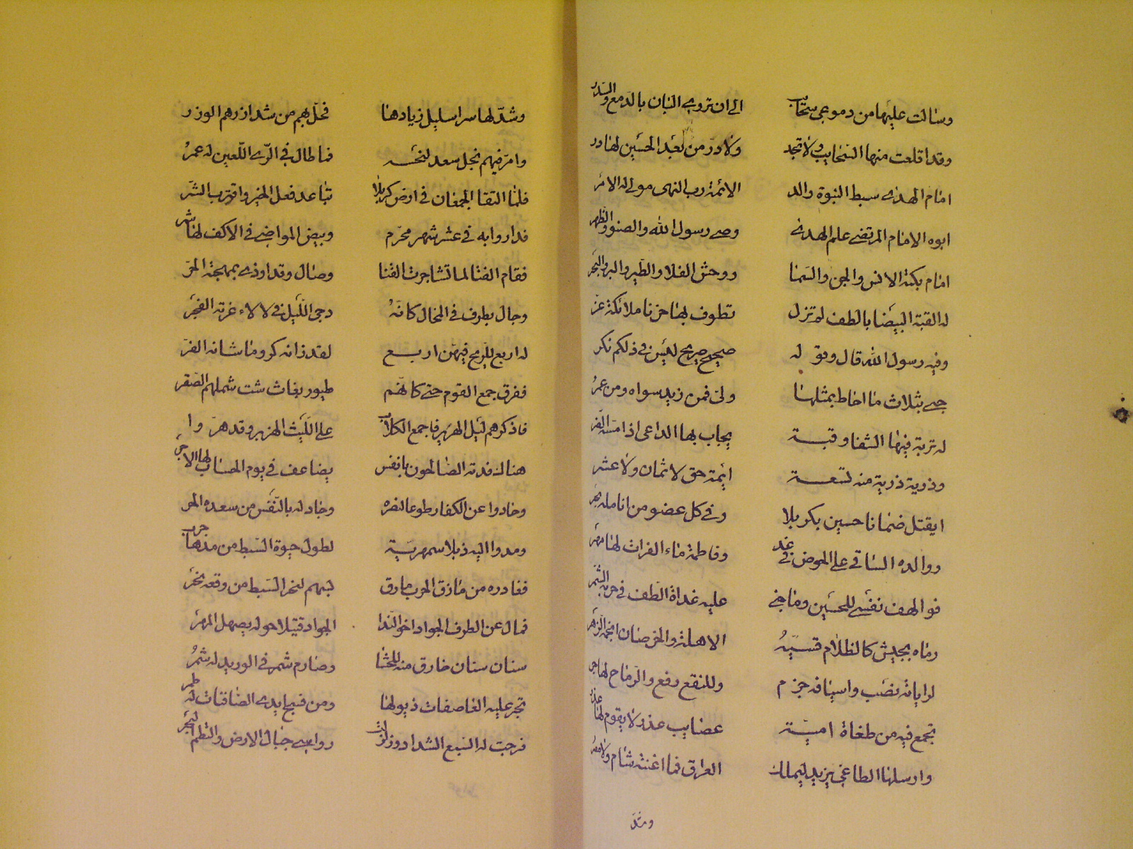 بخش اول از برگ1-148 شامل قصائد عربی از مقتل، بخش دوم اشعار کتاب الف لیلة و لیله از برگ 153-258